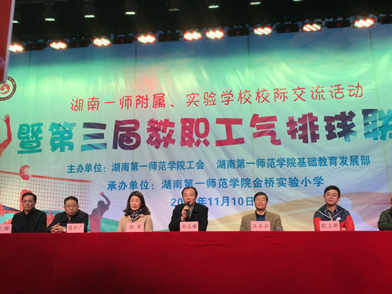 为了更好地落实十九大提出的“实施健康中国战略”,提高教职工体质,丰富教职工的业余生活,促进校园文化建设,增进合作办学学校教职工之间的交流,11月10日,湖南一师附属小学、实验学校校际交流活动暨第三届教职工气排球联赛在我校体育馆举行。