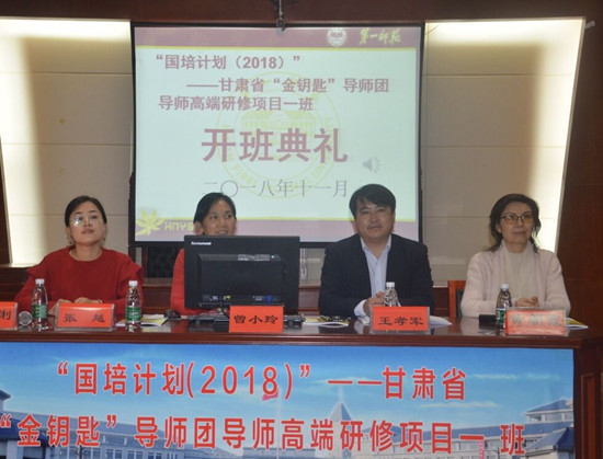 甘肃教育培训中心主任王孝军、干部张越、我校继续教育学院院长曾小玲、副院长黄朝霞、全体班主任参加了开班典礼。