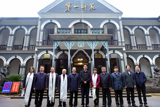 在我校城南校区,代表团一行来到毛泽东与第一师范纪念馆,参观了陈列展厅、毛泽东主席在一师求学时的大礼堂、教室、寝室和阅报室,了解了我校发展的历史沿革以及毛泽东主席在湖南一师的求学和生活经历,重温毛泽东等老一辈革命家的光辉业绩、崇高精神和道德风范。