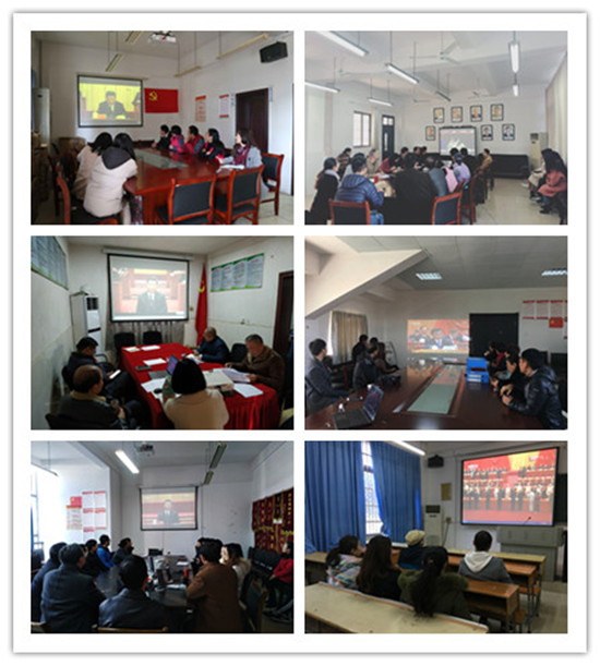 在行政楼一楼会议室,我校理论学习中心组集中收看大会实况直播。各部门、各学院的师生分别在办公室、会议室观看。马克思主义学院安排师生代表在会议室集中收看,并召开了座谈会。在视频会议室,196名学生党员代表集中收看直播。同时,我校东方红广场和国基广场LED同步播放。