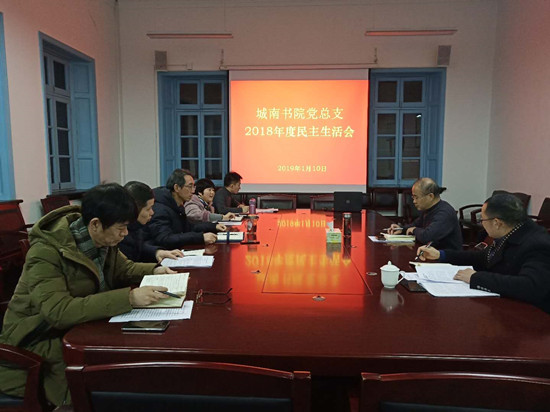 1月10日,城南书院党总支2018年度民主生活会在前楼会议室召开,校党委书记彭小奇出席并指导。城南书院党总支全体成员参加会议,校党政办副主任张福国出席会议,院党总支书记张尚晏主持会议。
