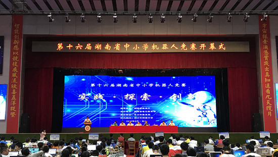 5月24-25日,由湖南省教育厅指导、湖南省电化教育馆主办、长沙市教育局承办的“第十六届湖南省中小学机器人竞赛”在长沙市明德中学举行。省教育厅副厅长王玉清、省电教馆馆长杨颖、长沙市教育局局长卢鸿鸣、中央电教馆付涛主任出席本次竞赛。全省14个市州的近300支队伍经过市县级比赛的层层选拔,参加了本次省级竞赛。我校“基础教育信息化技术湖南省重点实验室”主任李勇帆教授、李里程老师带领信息科学与工程学院21名学生担任本次竞赛的总裁判长和裁判员。