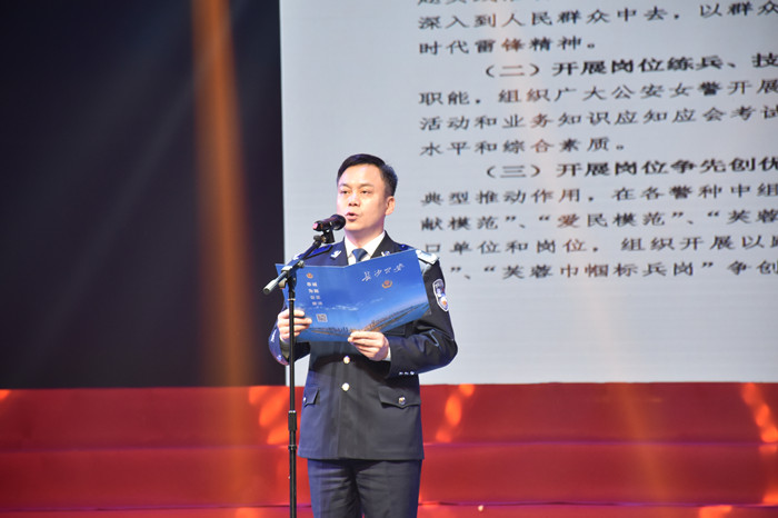 启动仪式后,与会代表观看了由民警们自编自创自演的文艺演出。开场节目《鼓舞》慷慨激昂、铿锵有力,誓言如火的巾帼一路浩荡、气势恢宏、鼓韵振奋;男女对唱《妻子》,一曲赞歌豪气荡柔肠,彰显了警察保家卫国的伟岸风采;情景朗诵《守望平安》,10位来自雷锋故乡的警花融情入文,用最朴实的语言诉说着对人民群众的深情大爱,对无上事业的竭诚奉献,阐释了雷锋精神的真谛;合唱《灿烂的阳光下》与舞蹈《人民公安向前进》红旗飘扬、庄严豪迈,将整个演出推向高潮。本次活动在一片掌声与欢呼声中,圆满落下帷幕。
