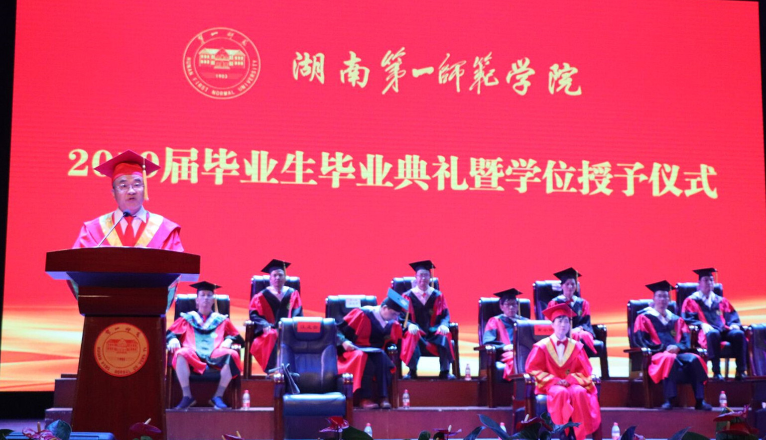 “衡山西,岳麓东,城南讲学峙其中。人可铸,金可熔,丽泽绍高风。多材自昔夸熊封。学子努力,蔚为万夫雄。”2019年毕业典礼在现场全体师生合唱校歌中圆满落幕。