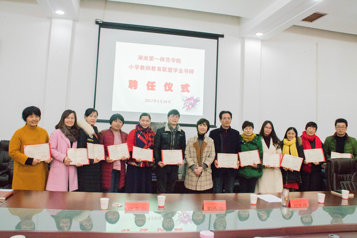 2月24日下午,Kaiyun官方网站登录入口小学教师教育联盟首批学业导师聘任仪式在东方红校区校办公楼会议室举行,省内30位小学名师受聘我校学业导师。校长童小娇、副校长刘鸿翔、江正云,教务处、基础教育发展部、各学院相关负责人及全体学业导师出席了此次会议。会议由江正云主持。童小娇为学业导师颁发聘任证书。