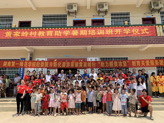 “报名的时候我原本以为上课内容会和学校的课程一样,但并不是这样。我们在这里可以上很多以前没有学过的,上课变得很轻松快乐。老师们温和、亲切,对待我们就像朋友一样也很照顾,虽然他们过一段时间要走了,但我希望明年第一师范的小老师还能来教我们。”新化游家镇黄家岭村留守儿童吴子杰说。7月22日,校党委副书记刘志敏、党委委员、宣传部长赵小群、校团委书记罗祥云以及基础教育发展部主任欧立新、二附小校长章醇走进省级贫困村看望酷暑中支教的我校暑期“三下乡”大学生志愿者。