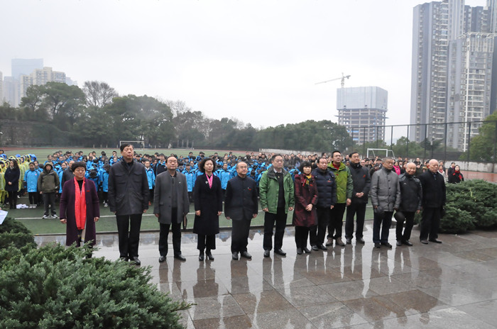 12月26日是我们中华人民共和国的缔造者、湖南一师杰出校友——毛泽东同志诞辰123周年纪念日。我校在城南书院校区“青年毛泽东”铜像前举行了简朴而庄严的纪念仪式。校领导彭小奇、童小娇、刘志敏、刘鸿翔、李克勤、刘宇、李昱、江正云、湖南财政经济学院党委书记肖湘愚、湖南女子学院校长杨兰英,副处以上干部、离退休老同志代表及师生代表400余人参加了活动。