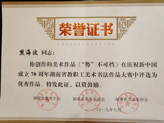 庆祝新中国成立70周年湖南省教职工美术书法作品大赛中我校教师喜获佳绩