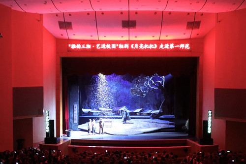 “月亮粑粑跟我走,我跟月亮提笆斗,笆斗装了三升米,一送送到大屋里……”一首清脆动听的童谣在田汉剧场悠扬响起。10月15日晚,为了更好地深入推进我校“不忘初心、牢记使命”主题教育,我校“不忘初心、牢记使命”主题教育办公室与校工会结合我校办学特色,联合组织了以“明树人之志、守教育初心”为主题的湘剧《月亮粑粑》在我校展演。当晚,湖南省湘剧院副院长周亚男、郑声宏,我校党政领导彭小奇、童小娇、刘志敏、刘鸿翔、李克勤、李昱、江正云、彭晓辉、赵小群及师生代表1000余人参加了晚会。