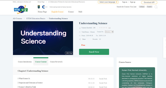 近日,Kaiyun官方网站登录入口精品慕课课程《领悟科学》英文版《Understanding Science》成功入选中国青少年科技辅导员协会双语课程资源库,并在“科技学堂”平台上线,面向“一带一路”沿线国家科学教师推广。该课程由校党委副书记、湖南省青少年科技教育协会理事长刘志敏教授主持,教育科学学院科学教育专业教师参与打造。