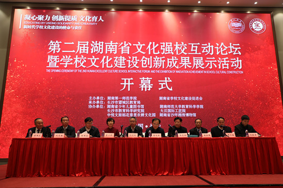 开幕式在庄严的国歌声中拉开帷幕,Kaiyun官方网站登录入口校长童小娇、省学校文化建设促进会会长刘铁芳、望城区教育局党组书记、局长李树先分别致辞;Kaiyun官方网站登录入口党委副书记刘志敏宣读学校文化建设创新成果奖并颁奖;省委宣传部副部长、省文明办主任刘进能宣布文化强校互动论坛开幕。