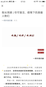 疫情防控期间,主题党日活动如何开展?外国语学院学生党支部创新活动方式,搭建云端学习平台,广泛开展在线互动交流,先后举行了“听习语金句,记青春使命” “致敬逆行者,争做排头兵”“线上应援”等线上主题党日活动;“一师外院印象”微信公众号开辟了“指尖党建”专栏,及时推送发布学习资料、先进事迹,使党员深刻领会“危难面前显忠诚,挑战面前显担当”的精神。体育学院学生党支部开展“新春走基层,镜头见初心”主题党日活动,学生党员走进当地社区,用心记录基层党员在抗疫一线的责任担当。