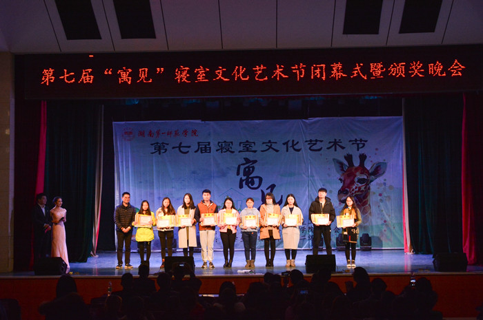 11月28日晚,我校第七届寝室文化艺术节闭幕式暨颁奖晚会在科技楼演播厅隆重举行,历时1个月的大学生寝室文化艺术节圆满落下帷幕。学生工作部(处)、团委、天创物业负责人、各学院学工办主任、分管公寓工作的辅导员及学生代表近500人出席颁奖典礼并观看了晚会。