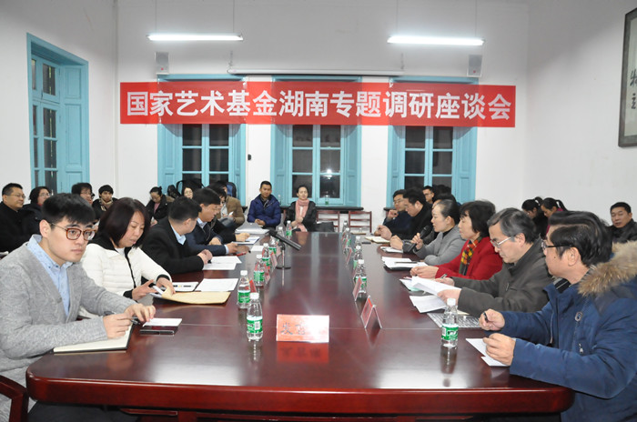 围绕“国家艺术基金三年来的实践对促进艺术事业健康发展的意义”这一调研主题,与会人员畅所欲言,充分发表了意见。曹兴在发言中谈到,国家艺术基金对我校在创新人才培养模式、创作文化艺术作品、转化文化艺术成果、挖掘艺术创作素材、继承湖湘文化等方面的工作显现出了积极的作用,建议国家艺术基金进一步加大项目管理、财务管理的管理力度,解决大家的困惑,让项目更好地运作。其他与会者针对艺术作品创作、人才培养、成效评估、申报指南修订、艺术成本与效益等方面谈了各自的思考与建议。