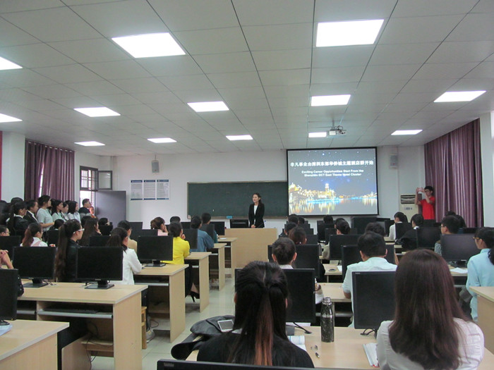 日前,我校校企联合培养深圳东部华侨城教学班(第三期)学员选拔面试在实验楼举行。深圳东部华侨城有限公司人力资源部主管刘晓翠和招聘经理郭丹卉分别介绍了东部华侨城酒店和景区的情况,随后进行了选拔。我校2014级旅游管理、会计学、市场营销、公共事业管理、国际经济与贸易、音乐学6个专业的学生参加了面试。