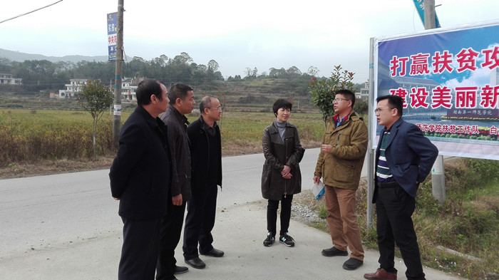 11月3日上午,校党委书记彭小奇、校长童小娇、校党委副书记刘志敏等一行到双峰县白泥村调研了我校扶贫工作。