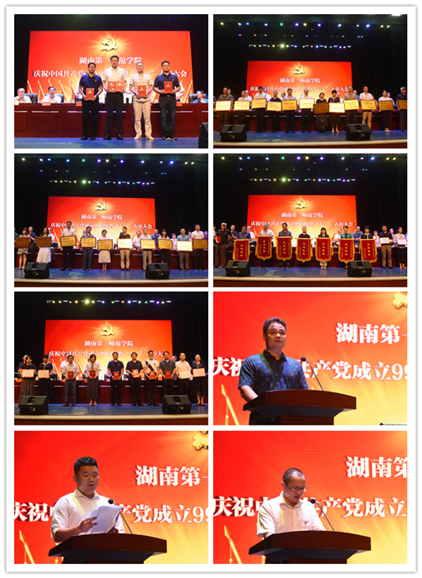 6月30日下午,学校在田汉剧场隆重召开庆祝中国共产党成立99周年暨“七一”表彰大会。校党政领导,校纪委委员,各部门(单位)党政负责人,各党总支副书记、总支委员,各党支部书记,受表彰集体及个人参加大会。会议由校党委副书记刘志敏主持。