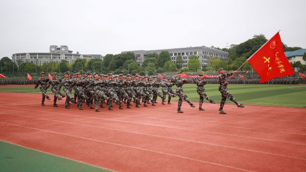 军训成果展示赢得了阵阵掌声和喝彩。两个校区的新生分别表演了军歌方阵、队列方阵、拳术方阵、手语操方阵和爱国文化方阵。军歌表演用一首首爱国歌曲致敬我们伟大的祖国;拳术表演刚劲有力,展示我中华儿女强健之体魄、顽强之精神;手语操表演伴随着“有国才有家,我爱我国家......”的背景乐,用手语表达了对祖国母亲的深厚感情;爱国文化方阵以抗疫为主题,队形在“十”字、“346”“14亿”“中国地图”间切换,在这场没有硝烟的战争中,我们感受到了牺牲自己,保卫国家的人间大爱。回望疫情,我们情不自禁得喊出:“中国加油!中国必胜!”