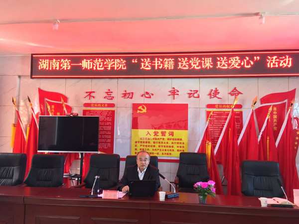 为贯彻落实习近平总书记在湖南考察期间重要讲话精神,切实提升脱贫质量,实现脱贫攻坚和乡村振兴有机结合,校党委书记彭小奇带队赴长丰村开展“三送”活动,送理论到基层、送党课到支部、送温暖到农户。校党委副书记刘志敏、校党委委员、组织部长彭晓辉,纪委办(监察专员办公室)、审计处党支部全体成员及石牛乡党委书记彭小哈等参加了活动。