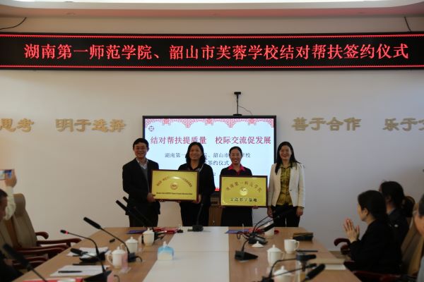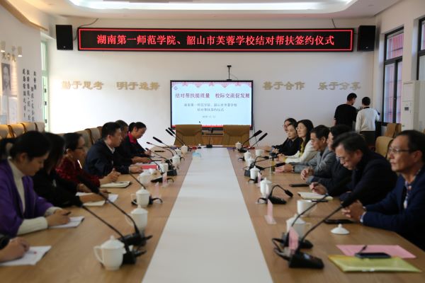 江正云在讲话中表示,我校将充分发挥在基础教育领域师资职前职后培养、教育教学改革研究的优势,为提升韶山区域创新能力、促进社会经济发展服务。通过湖南一师、一师附属小学及小学教师教育联盟学校与芙蓉学校结对帮扶,探索构建城乡学校共同发展机制,进一步提升芙蓉学校的办学理念、促进芙蓉学校教师专业发展,提高芙蓉学校办学水平和教育质量,推动芙蓉学校的教育现代化建设,实现芙蓉学校好设计、好风格、好形象、好校长、好教师、好学生的“六好”建设目标,进而辐射整个韶山地区,助推韶山市的教育强市和教育事业发展。