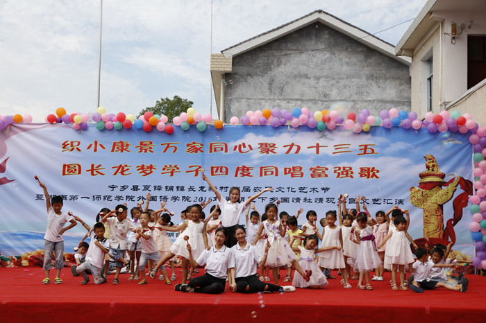 7月21日上午,宁乡县夏铎铺镇长龙新村龙潭小学人声鼎沸、掌声连连。长龙新村首届农民文化艺术节暨Kaiyun官方网站登录入口外国语学院“跨时代”2016年大学生暑期“三下乡”赴宁乡县夏铎铺镇长龙新村国情社情观察团文艺汇报演出在这里隆重举行。