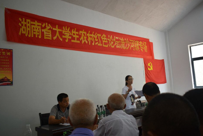 马克思主义学院2016年暑期“三下乡”赴宁乡县流沙河镇国情、社情、党情、民情“四情”观察团由5名专业老师和23名思想政治教育专业学生组成。活动期间, “三下乡”实践团时刻牢记校领导在我校2016年暑期 “三下乡”社会实践活动启动仪式上的嘱托,秉承“作贡献、受教育、长才干”的活动宗旨,充分发挥专业特色,在当地开展了丰富多彩的社会实践活动:
