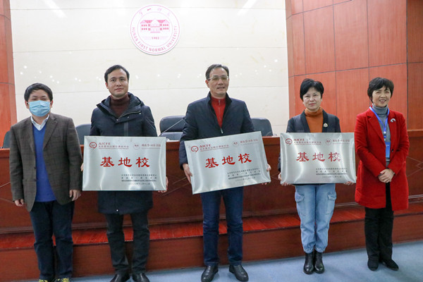 上午在东方红校区视频会议室,来自北京师范大学余胜泉教授和陈玲博士、首都师范大学焦宝聪教授、长沙市教育局副局长缪雅琴分别作了《未来教育和未来学校发展新生态》《技术支持下的智慧教研》《新技术环境下教师信息化教学能力提升的几点思考》《AI赋能,构建智慧教育新生态》四场专题报告。期间,童小娇和余胜泉教授还共同为北京师范大学未来教育高精尖创新中心在我省设立的首批基地校(一附小、二附小、斑马湖小学)进行了授牌。最后,我校信息科学与工程学院教授何向阳简要介绍了我校湖南省智慧教育关键技术与应用工程技术研究中心的现状与发展目标。