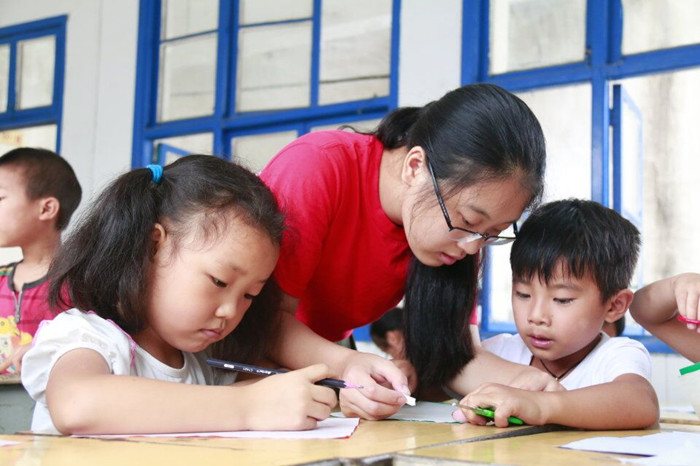 志愿者们为了不辜负家长们的厚望,认真备课,精心准备了手工、剪纸、版画、书法等课程。这些课程的内容都紧密结合山江镇苗族地区的文化地域特征。如:剪纸课上的是蝴蝶妈妈;吹塑纸版画课是以苗族的花纹图案为题材;手工粘贴画则就地取材,提前布置小朋友们从家里带来花草树叶,完成了一幅幅颇有地域特色的树叶粘贴画。孩子们面对这些与自己生活环境息息相关的课堂内容,既兴奋又好奇,每天都早早来到校园,认真学习。短短的9天学习,小朋友们完成了花手帕、剪纸、吹塑纸版画、撕纸粘贴画、树叶粘贴画、书法等等一大堆作品,成功举办了作品展览,受到了学校老师和家长们的高度赞赏。