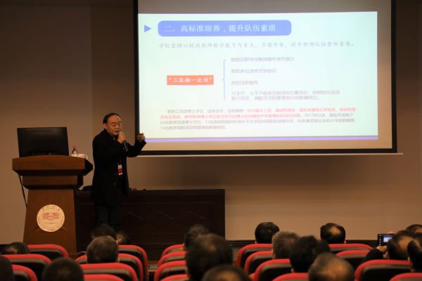 现场教学活动在我校城南校区报告厅举行。校党委委员、副校长,省总工会挂职副主席刘鸿翔做了题为《深化人事制度改革 助推学校健康发展》的报告。他从高层次引才优化队伍结构、高标准培养提升队伍素质、高效益使用形成整体效应、高要求评价完善职评制度和高效率激励健全分配机制五个方面介绍了我校人事工作所取得的成绩以及在推进人事工作中所采取的有效措施,与大家分享了我校人事工作的经验。