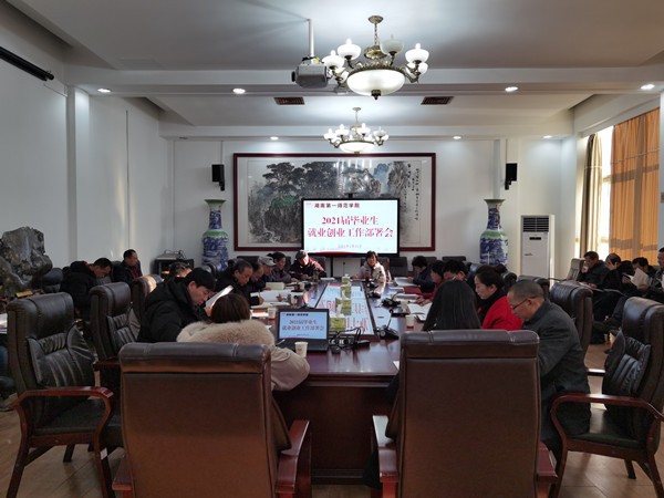 为进一步做好我校2021届毕业生就业创业工作,促进毕业生更充分更高质量就业,1月11日上午,我校在东方红校区行政办公楼一楼会议室召开2021届毕业生就业创业工作部署会。校党委书记彭小奇、校长童小娇、纪委书记李昱、副校长江正云以及招生就业处、学工处、教务处、纪委、团委、各学院党政主要负责人和党总支副书记参加会议。会议由江正云主持。