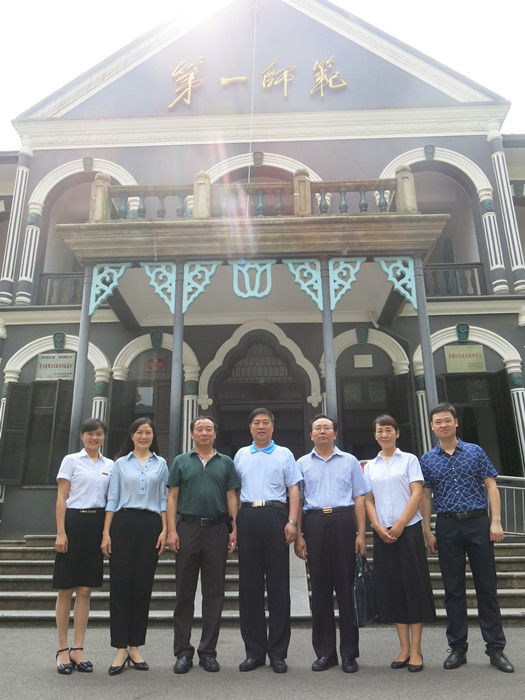 7月11日上午,中国高等教育学会会长、教育部高校学生司原司长、中国农业大学原党委书记瞿振元,在湖南大学规划办常务副主任、教育科学学院党委书记罗仲尤陪同下,来到我校毛泽东与第一师范纪念馆参观。我校党委副书记刘志敏、教育科学学院院长蒋蓉以及毛泽东与第一师范纪念馆馆长艾建玲、副馆长刘立勇等热情接待,并陪同参观。 瞿振元一行在讲解员的带领下,先后参观了我校旧址和纪念馆各展厅,详细了解了一代伟人毛泽东在我校的学习和工作经历。在参观过程中,刘志敏副书记还向瞿振元一行介绍了我校校史,特别是早期民本主义教育的有关情况。瞿振元为我校深厚的历史文化底蕴所震撼,并对我校取得的巨大办学成绩给予了高度评价。