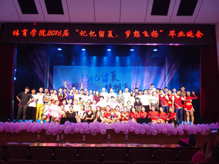 6月12日晚,体育学院2016届“记忆留夏,梦想飞扬”毕业欢送晚会在东方红校区演播厅隆重举行。副校长刘宇、学工处处长何文、现代教育技术中心主任朱承学、美术与设计学院副书记舒克斌、体育学院党政领导以及全院师生员工观看了晚会。