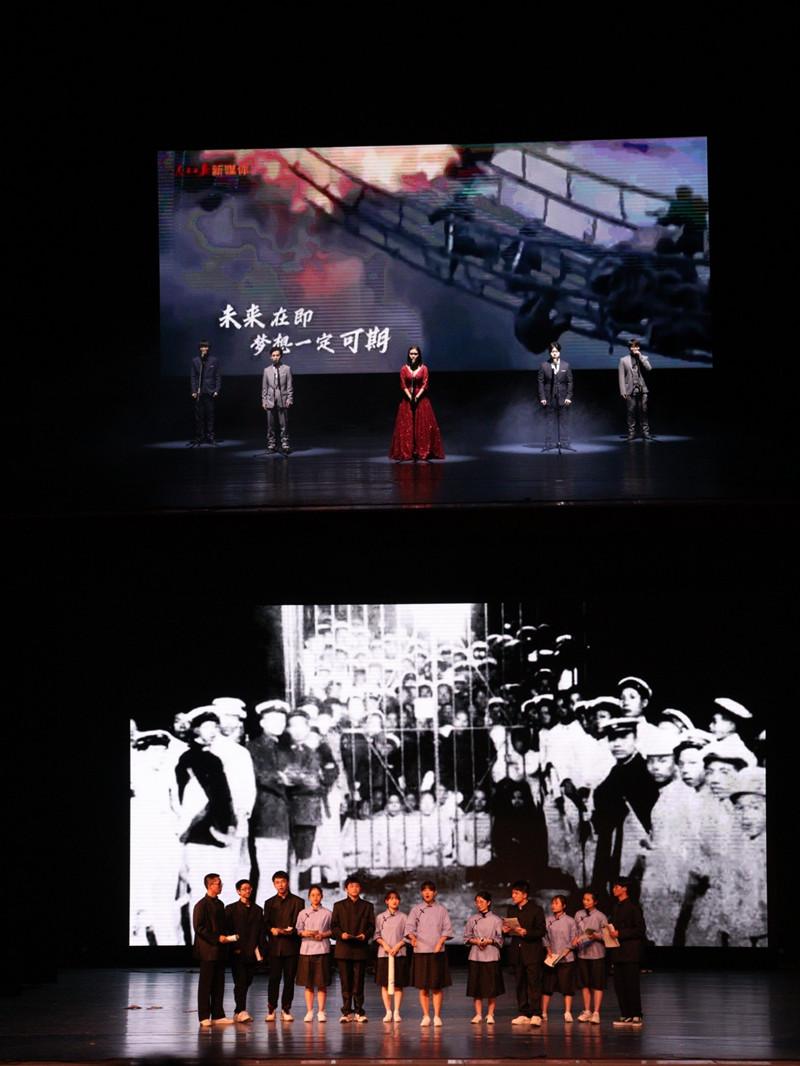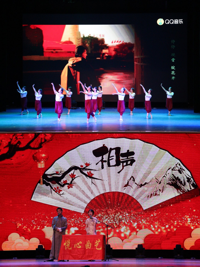 晚会在晨曦音乐社带来的歌曲《少年》改编版中拉开了序幕,整场十个节目充分展示了社团文化的蓬勃生机,歌颂了百年腾飞的中国和永远向上的中国少年。守望支教社与毛泽东协会、红色学坛一起带来的小品《百年征程》重现了百年前那群志气蓬勃的青年,民族舞蹈协会的《芳华》以美不胜收的舞蹈展现了祖国历史的芳华。整场晚会节目丰富多彩,形式多样,融歌曲、舞蹈、相声、小品、器乐等多种表演于一体,引得台下掌声连绵,欢呼不断。