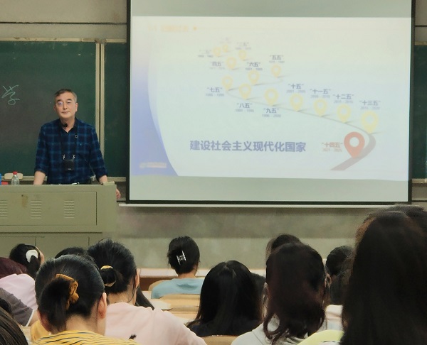 6月3日晚,副校长曹兴在润寰南101讲“形势与政策”课。他围绕“绘就新蓝图,奋进新征程”主题,从“胸怀两个大局 把脉发展阶段”“肩负历史使命 擘画宏伟蓝图”“保持战略定力 勠力同心前行”三个方面进行了生动讲授。他指出,青年学生应坚定理想信念,与时代同向同行,争做勇立潮头之人;锤炼高尚品行,练就过硬本领,做奋发有为之人;胸怀千秋伟业,实践报国之行,争做担当有为之人。