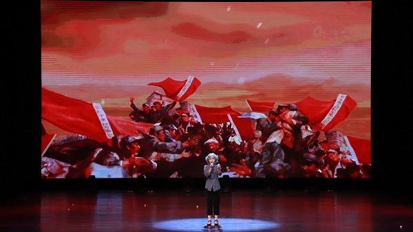 诵读大会在激昂澎湃的交响乐与合唱《东方红》中拉开序幕。潇湘电影集团党委委员、副总经理,湖南电视台潇湘电影频道总监,国家二级文学编辑李红,湖南卫视新闻主播何娟,湖南广播电视台播音指导曾致,湖南艺术职业学院播音主持专业讲师杨雁带来示范朗诵《心之力(节选)》。现场参赛的14个作品26位选手满怀激情,用慷慨激昂的声音,带领大家重温中国共产党成立一百年来经历的苦难与辉煌、奋斗与荣耀,精彩演绎和抒发了对祖国的讴歌与热爱,给现场听众带来了心灵的浸润和精神的洗礼。我校音乐舞蹈学院师生也为大会奉献了精彩纷呈的歌舞表演。