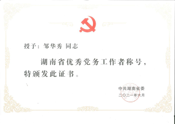 省委授予我校邹华秀同志“湖南省优秀党务工作者”称号