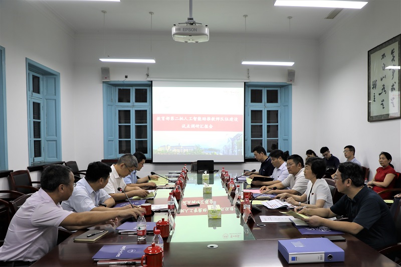 7月20日下午,教育部教师工作司副司长黄小华、综合处副处长王炳明一行来我校调研第二批人工智能助推教师队伍建设试点工作,省教育厅副厅长王玉清、省教师工作与师范教育处副处长王俊良陪同考察。校党委书记罗成翼、校长童小娇、副校长周发明、彭晓辉,以及相关职能部门负责人参加了座谈会。
