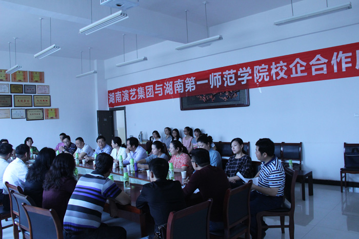 吴友云表示,湖南省演艺集团可以推荐艺术家来校担任客座教授,学校也可以推荐师生到演艺集团担任特邀编导、演员、艺术顾问等,双方人员互聘、共享优势资源成为常态。吴友云指出,湖南省演艺集团今后的大型演出活动、艺术演出平台将为湖南一师的学生广泛开放,为大家提供更多的见习、实习机会,双方在演艺资源、科研开发、艺术培训等领域进行广泛而深入地合作,确保校企合作取得实质性成果。