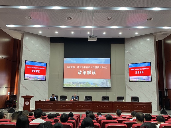 会上,科研处处长黄小喜从编制说明、主要内容、重要注意事项、附件说明等四个方面,对我校科研工作量核算办法的新政策进行了全面深入地解读。