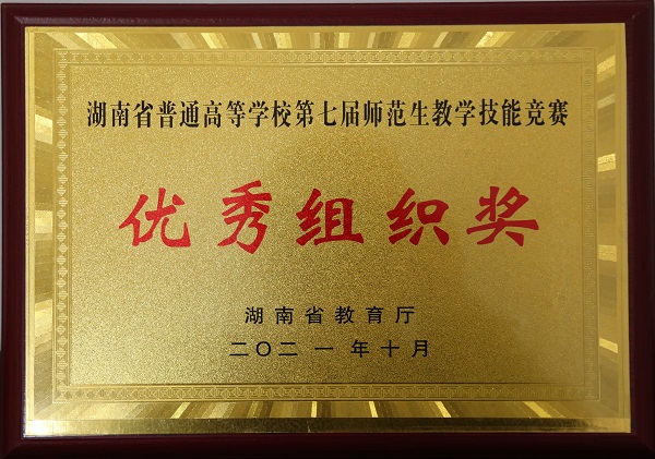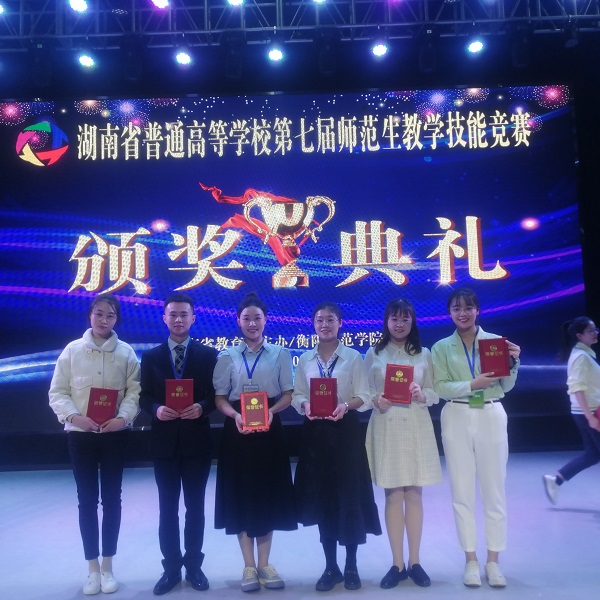 10月23日,湖南省普通高校第七届师范生教学技能竞赛在衡阳师范学院举行。我校10名选手参赛,通过激烈角逐,全部获奖,其中获一等奖3人,二等奖5人,三等奖2人,学校获“优秀组织奖”,是历届大赛以来最好成绩,充分展示了我校师范生良好的综合素质和扎实的教学能力。