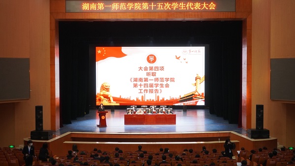 我校学生会第十四届执行主席汤明希同学向大会作题为《坚定理想信念锤炼高尚品格发奋成长成才在建设特色鲜明的一流师范院校进程中放飞青春理想》工作报告。他回顾和总结了我校第十四届学生会开展的各项工作、取得的成效,明确了学生会下一阶段的工作目标和任务。