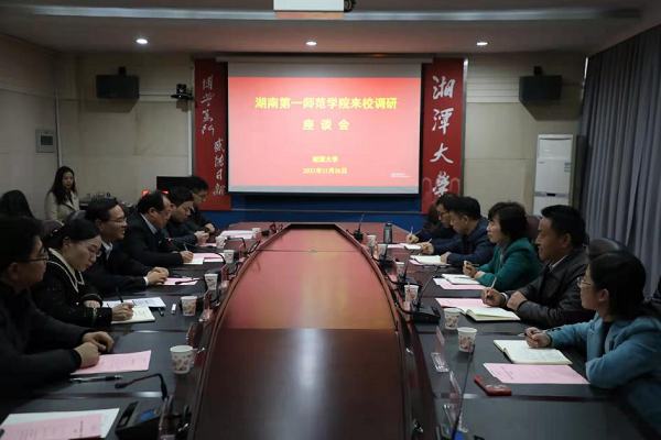 11月26日,校长童小娇带领科研处、计算机学院、电子信息学院和数学与统计学院负责人前往湘潭大学调研学习。