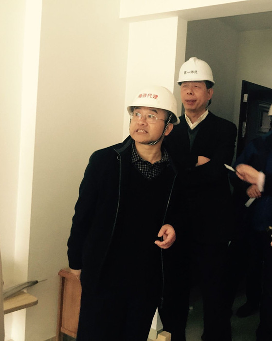 彭书记在对周转宿舍楼的整体布局与工程进度等进行考察后,重点对楼栋内部住房的布局和设施进行了具体指导。彭书记手握卷尺,从房间灯光布局的合理性到生活必需设施的实用性等方面,均一一做了现场测量并提出指导意见。他叮嘱相关部门和建设施工单位的负责同志,在布局设计时要始终坚持以人为本,真正为入住教师考虑;要选取质优价好的材料,确保教师们住得舒心、住得放心;要在保证安全和质量的前提下,加快项目进度,争取早日交付使用。