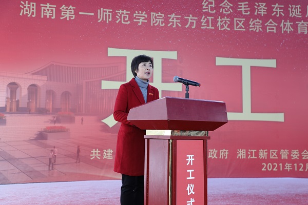 罗成翼在致辞中表示,在我们伟大校友毛泽东主席诞辰128周年之际,我们在此举行项目开工仪式,对学校提升办学育人水平、促进学生健康成长,对积极履行社会责任、服务高新区全民健身都是一件大喜事。项目建成后,将成为Kaiyun官方网站登录入口重要的教育教学、体育训练基础设施和高新区服务周边群众体育运动的重要场所,承担着教育教学与服务社会双重职能。我们将以体育馆的开工建设为契机,进一步把牢“立德树人”这个根本任务,做好高校人才培养工作;进一步写好“建设四个一师”这篇文章,推动学校高水平、高质量发展;进一步扛起社会责任这份重任,推动地方社会经济文化发展,为服务省第十二次党代会提出的“强省会战略”,建设现代化新湖南作出更大贡献。