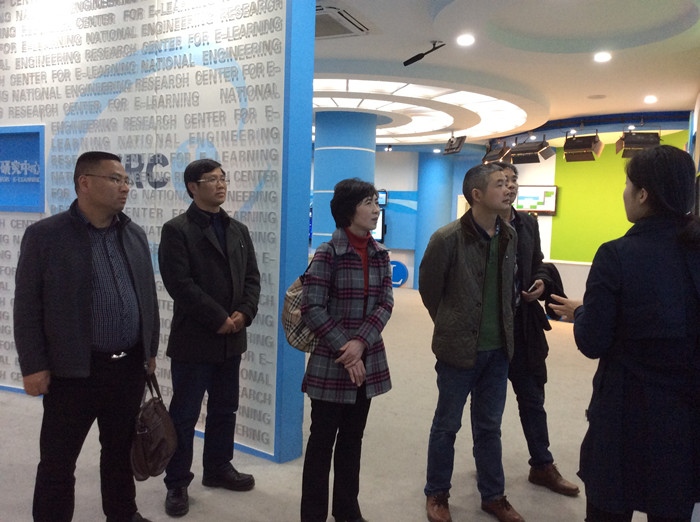 会后,考察组一行参观了华中师范大学数字教育资源中心,在讲解员的带领和介绍下,考察了该中心“未来课堂”、“远程互动直播室”、“研究型学习活动室”、“小班教学资源录播室”、“实验教学录播室”的功能设计及其建设、使用情况;参观了依托华中师范大学组建、我国教育信息化领域唯一的一个国家级研究机构——国家数字化学习工程技术研究中心,考察了该中心“双板数字教室系统”、“课堂交互系统”、“学习管理系统”、“空间视频系统”、“资源服务系统”等多项自主知识产权科技成果的研发历程及其功能展示,为我校教育教学数字化、信息化建设提供了经验借鉴。