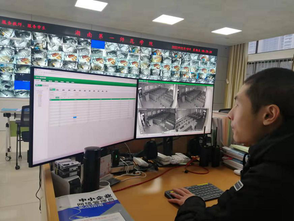现代教育技术与网络中心工作人员调试监控设备