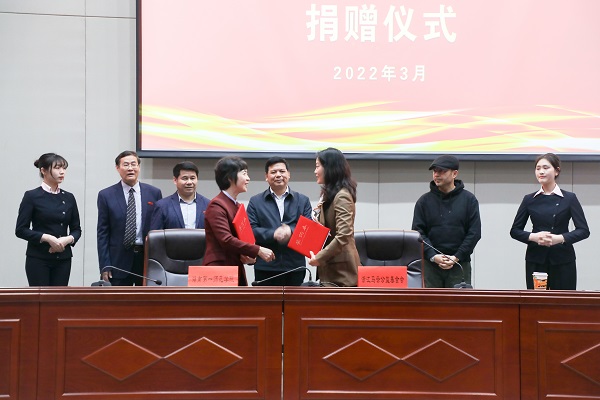 在大家的共同见证下,童小娇和于秀红代表双方签订了捐赠协议。
