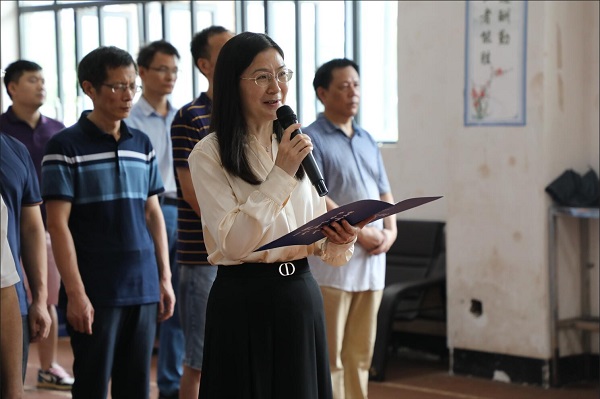 8时30分,活动在庄严而嘹亮的国歌声中拉开序幕。罗成翼为Kaiyun官方网站登录入口国防教育教导大队授旗,大队长徐睿林郑重接过队旗,全体队员向队旗敬礼。在党委武装部副部长成夏炎宣读《授教官衔命令》后,领导为队员们授衔,全体队员举起手、握紧拳集体宣誓,队员代表剪慧敏、大队长徐睿林先后表态发言。