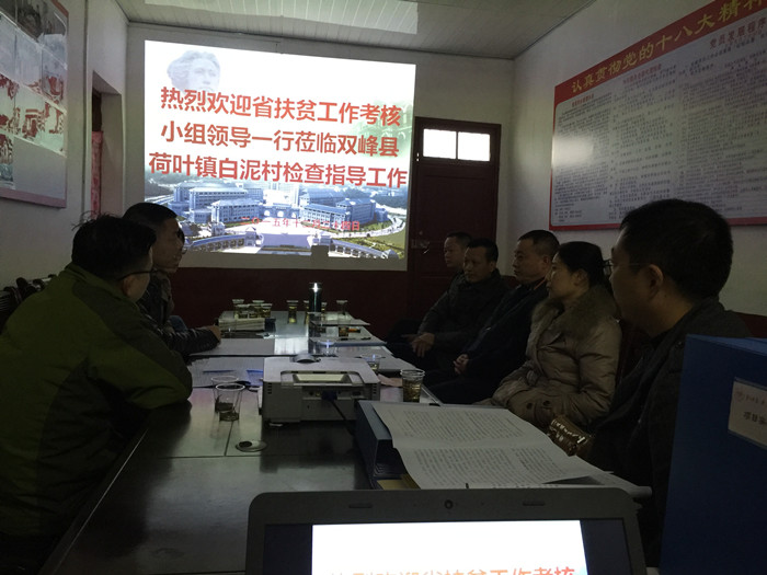 12月24日,受湖南省扶贫办、省委组织部、省直工委、省人力资源和社会劳动保障厅委托,由省扶贫开发领导小组办公室周伟生为组长、省新闻出版广电局王湘、省委组织部基层办刘凯敏组成的考核组一行,深入双峰县荷叶镇白泥村检查考核我校2015年扶贫工作。县扶贫办主任赵和平、驻地党委政府主要负责人、村支两委等参加了考核检查。