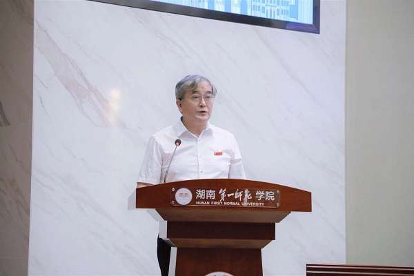 7月10日,由我校主办、湖南省思想政治工作名师工作室与马克思主义学院承办的新时代高校“大思政课”建设与“大思政”育“大先生”全国学术研讨会,在百熙楼228报告厅举行。会议采取线上线下相结合的方式进行,来自北京大学、中国人民大学、武汉大学、华南师范大学、南京航空航天大学、湘潭大学等高校的数十名知名学者和数百名师生参加了此次活动。校领导罗成翼、童小娇、曹兴、周发明、李昱出席。
